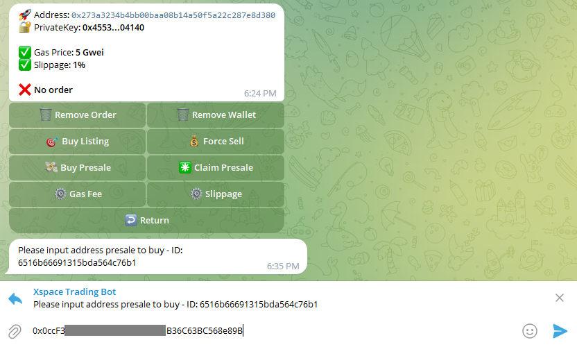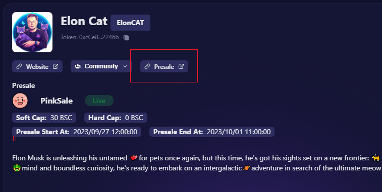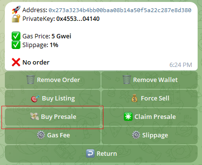 Enter in the chat box on telegram "Presale Address" on Pinksale